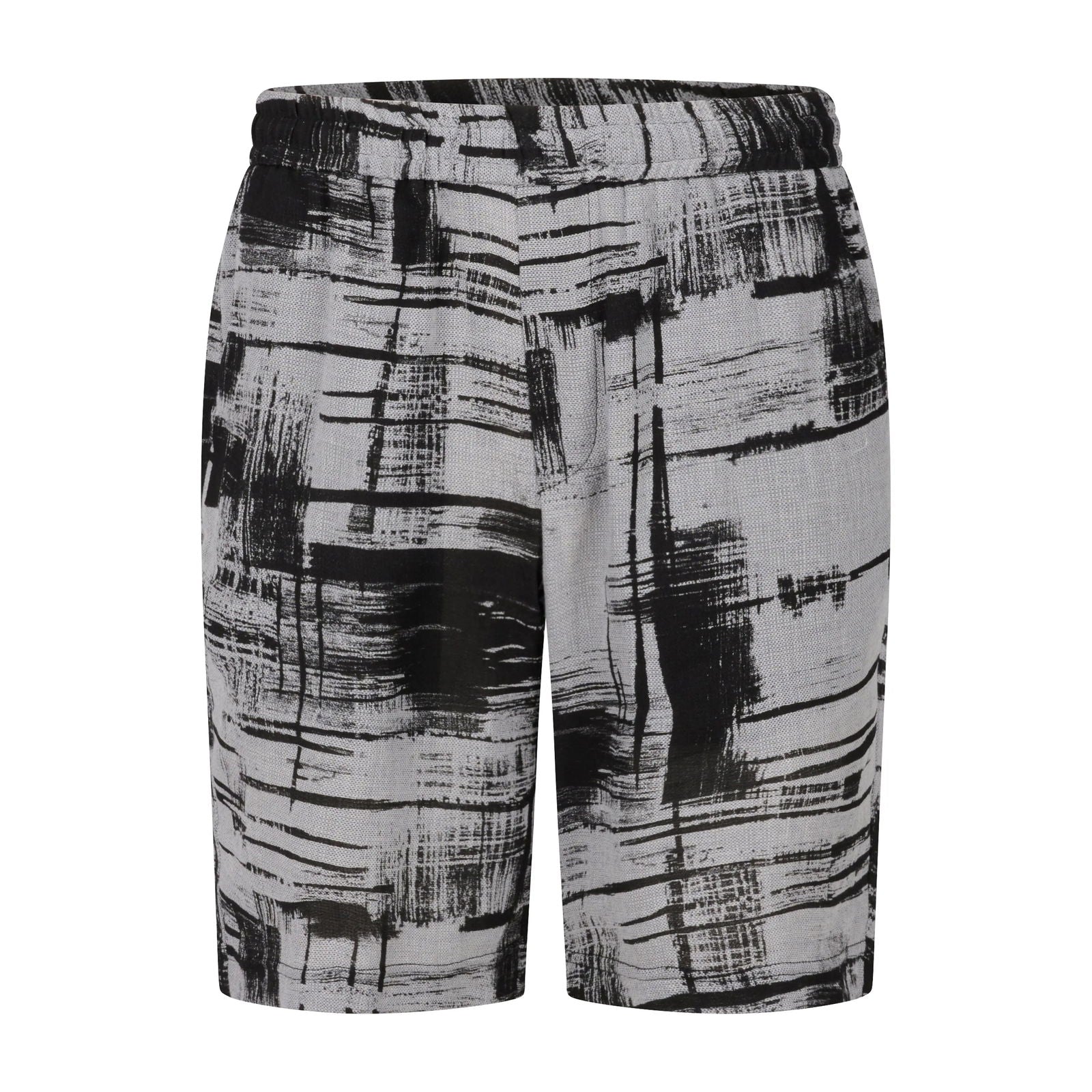Made in France: 100% Linen Shorts with Airy Weave and Black and Grey Geometric Print